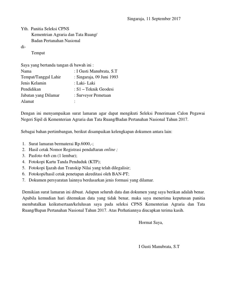 Contoh surat lamaran kerja badan pertanahan nasional have some pictures that related each other.