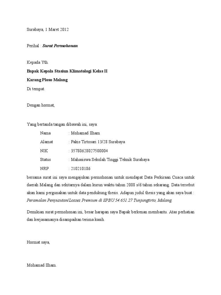 Contoh Surat Lamaran Kerja Bmkg. Contoh surat lamaran kerja Model Gabungan pastinya musti dipahami Anda yang hendak melamar dan dapat segera dipanggil. Menuliskan surat lamaran kerja sebaiknya singkat dan padat, tidak bertele-tele.