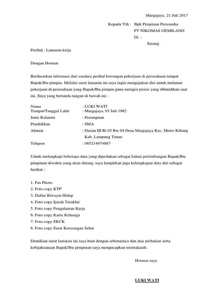 Contoh Surat Lamaran Kerja Mekanik Yang Baik Dan Benar Id Lowker.