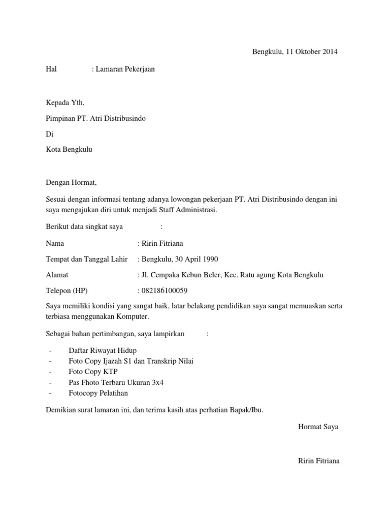 Ardi Sanjaya Vice-President of Sales PT. Cara membuat lamaran kerja yang baik banyak dicari para pelamar pekerjaan..cara membuat portofolio lamaran kerja cleaning service. conto lamaran kerja tambang nikel » obrolan . Bermaksud untuk mengajukan lamaran pekerjaan untuk posisi tersebut di perusahaan yang bapak pimpin.
