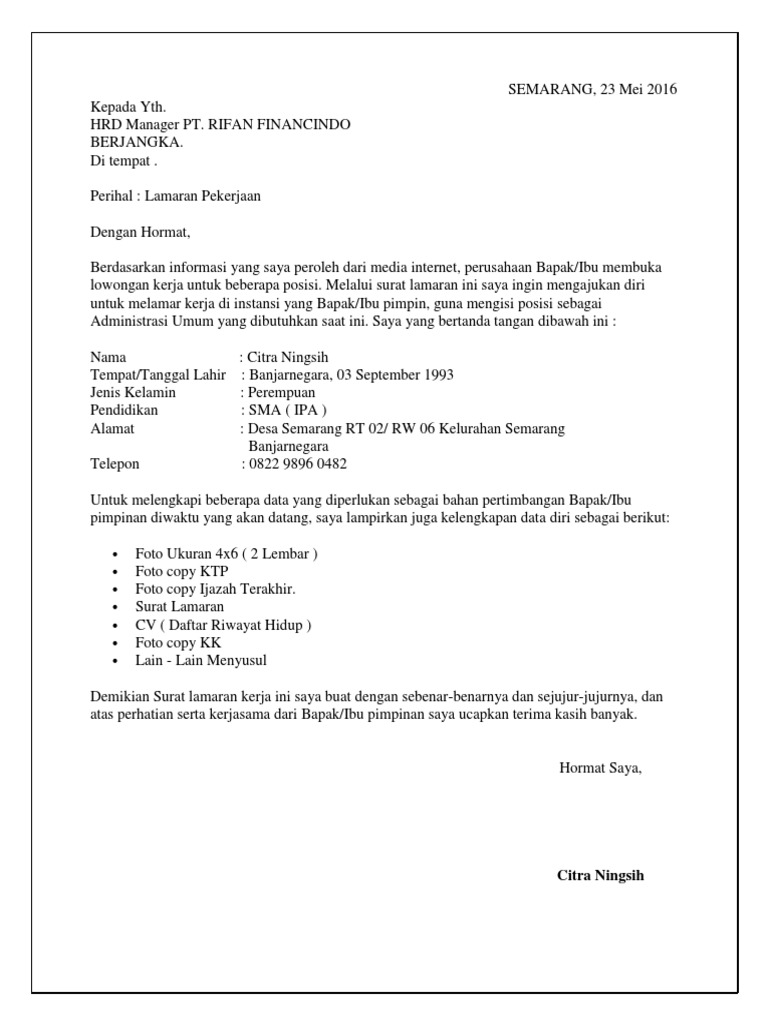 Demikian surat lamaran kerja ini saya buat, saya sangat berharap agar dapat diikutsertakan dalam tahapan proses seleksi lanjutan. The collection that comprising chosen picture and the best amongst others. Mencantumkan pengalaman kerja (jika sudah pernah.