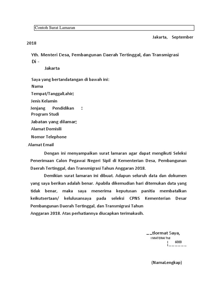 Contoh surat lamaran cpns ini akan diserahkan ke instansi terkait yang kalian inginkan.