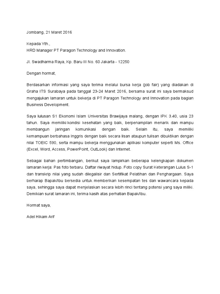 Penanaman Modal Madani (PNM) pada posisi sebagai Staff Akuntansi, maka saya yang bertanda tangan di bawah ini: Nama : Catrine Nur Islami. HRD Manager PT Berkas Jaya Grup Jl. Perhatikan penggunaan tata bahasa Indonsia yang benar dan pilihlah diksi yang.