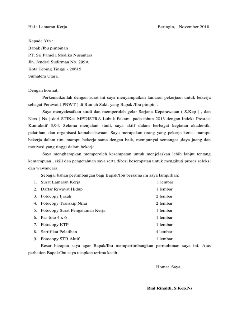Penerimaan Calon Korfas Dan Tenaga Fasilitator Lapangan Tfl Nagari Tanjung Haro Sikabu Kabu Padang Panjang. HRD Manager PT Berkas Jaya Grup Jl. Ketika kamu melamar kerja sebagai karyawan di suatu PT atau kantor tertentu, tentu kamu harus melakukan hal penting dalam membuat surat lamaran kerjanya.