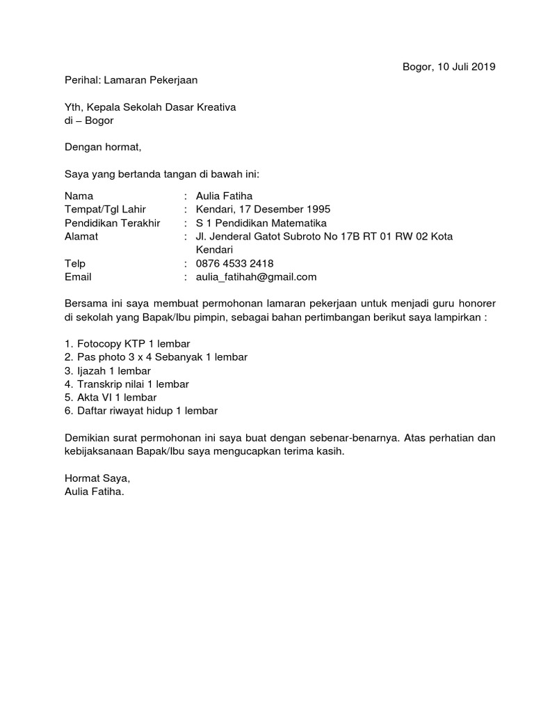 Isi lamaran merupakan hal yang spesifik mulai dari tanggal, penyebutan perusahaan, hingga. Dalam cara membuat surat lamaran pekerjaan yang efektif, kata "saya" sebaiknya jangan terlalu sering digunakan. Bedakan surat untuk setiap posisi pekerjaan.
